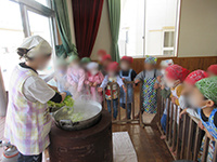 ●戸外あそび●散歩●リズム運動●絵本の読み聞かせ●歌う●描く●作る●ごっこ遊び●表現あそび●年長児課題活動●手作り給食●おやつ